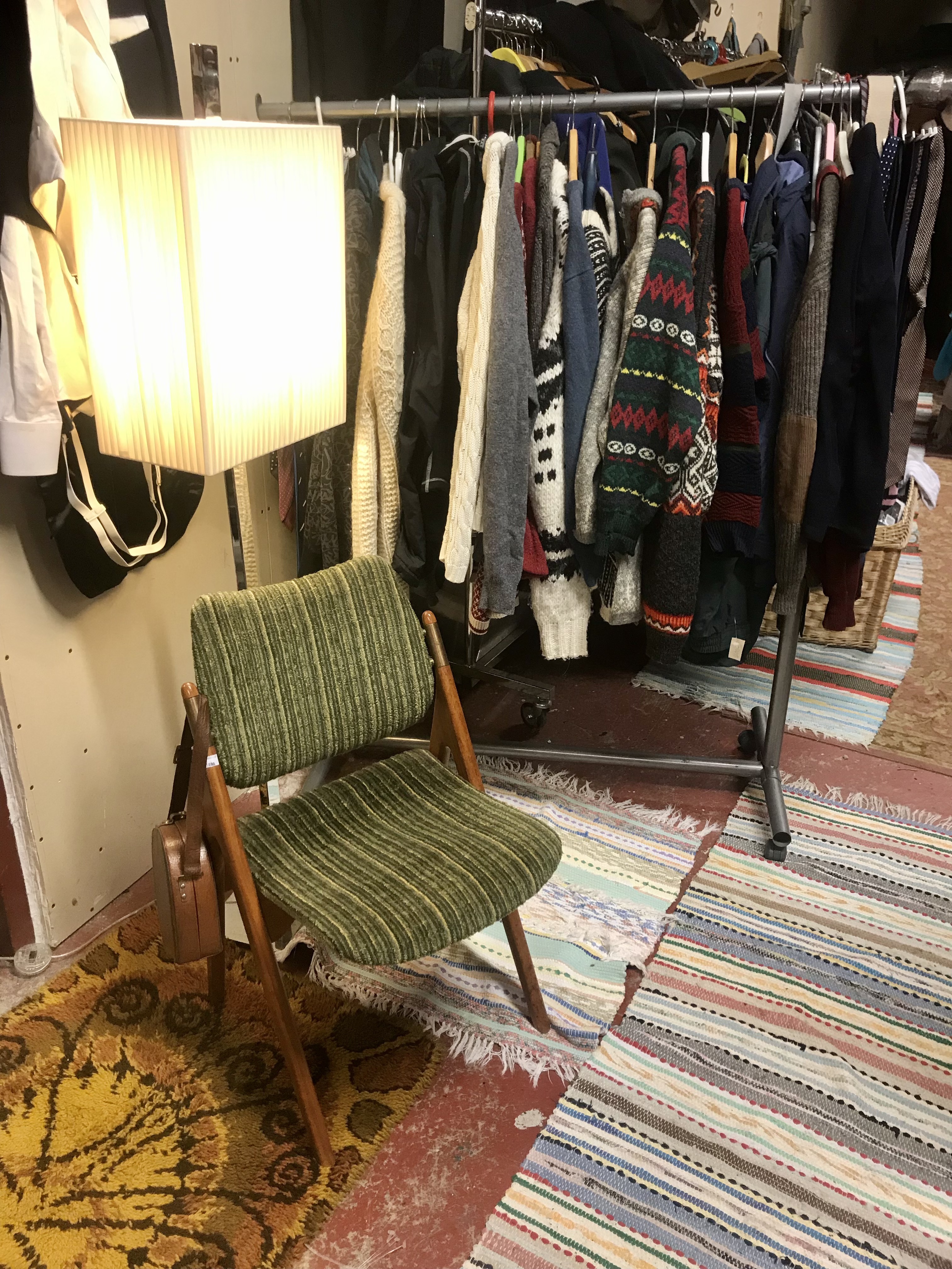 Vi har en egen avdeling med ulike tekstiler og tøy. Her finner du alt fra bluser, pelskåper, dresser, duker og annet stæsj!